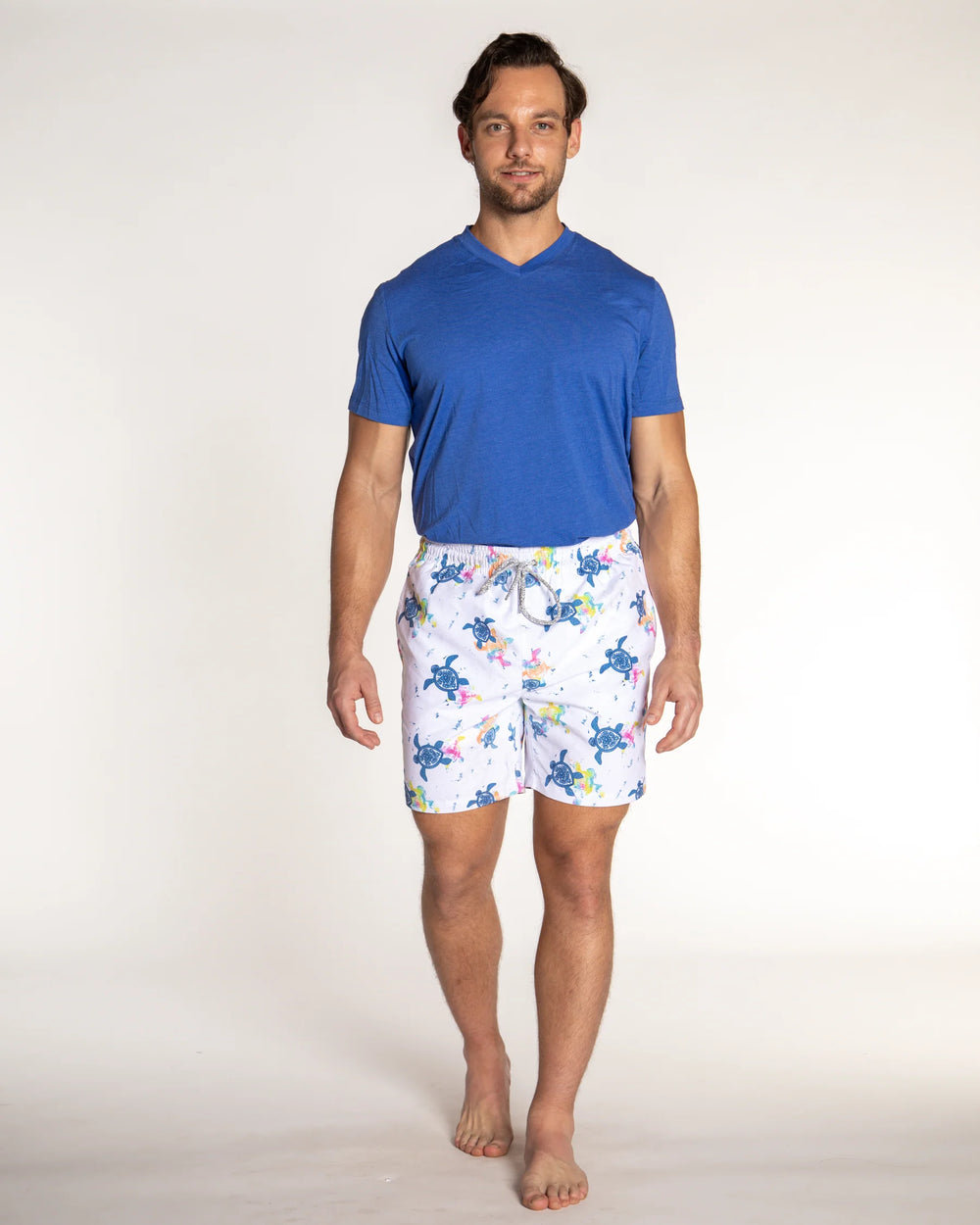 Michael's Men's Cyclist Liner Swim Trunks - Turtles: White
