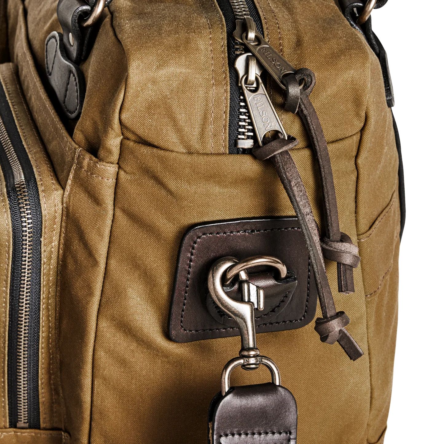 Do not wash or dry clean – brush or wipe clean with a damp rag. Rewax as needed to maintain maximum water resistance. To prevent the transfer of oils, we recommend avoiding prolonged contact between Filson oil finish goods and light-colored fabrics, especially in warm weather.
