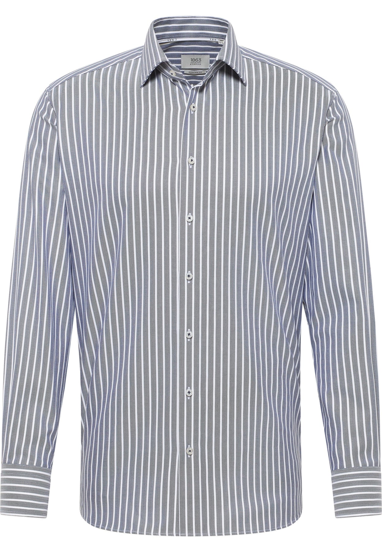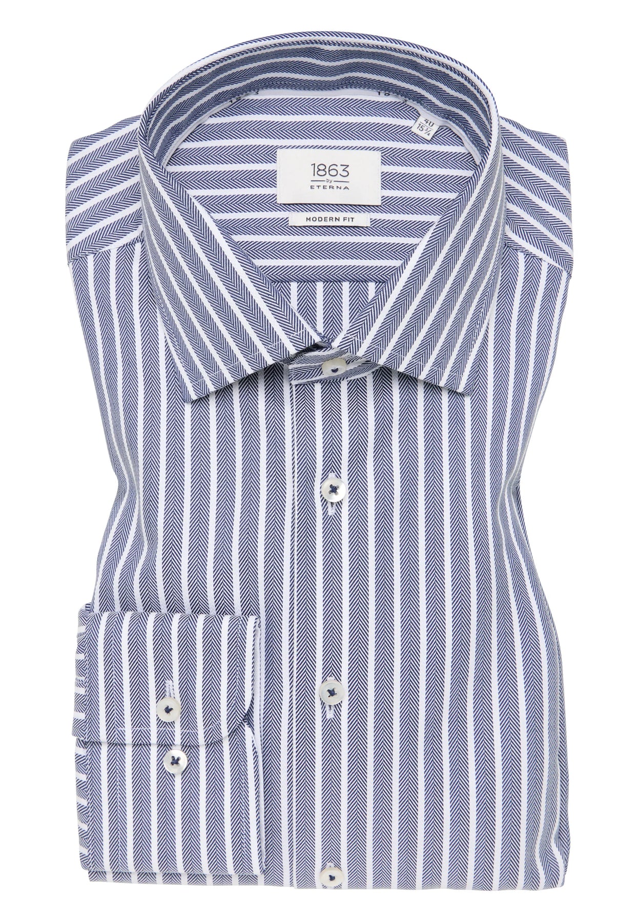 Eterna Modern Fit Herringbone Stripe with Kent Collar: Navy Stripe