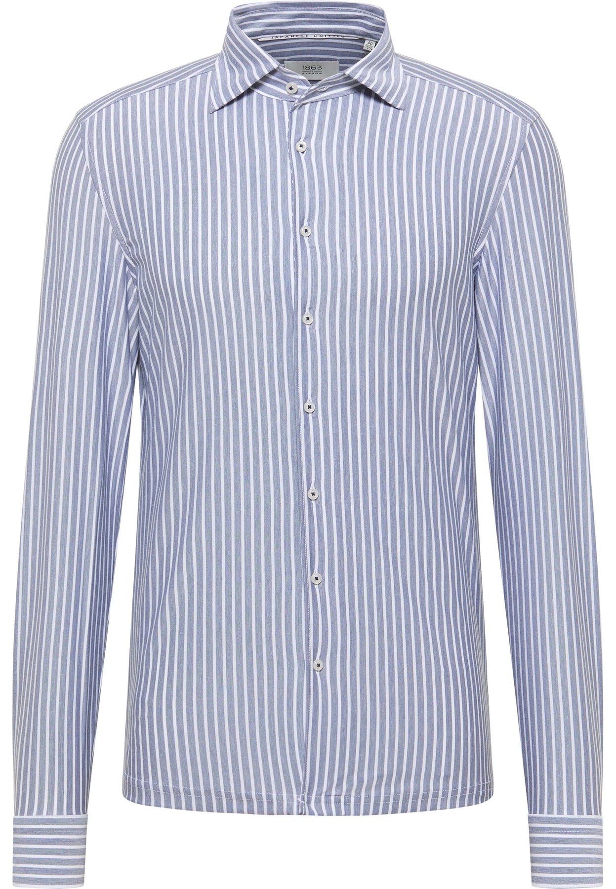 Eterna Slim Fit Japanese Knit Stripe with One Piece Collar: Grey Blue