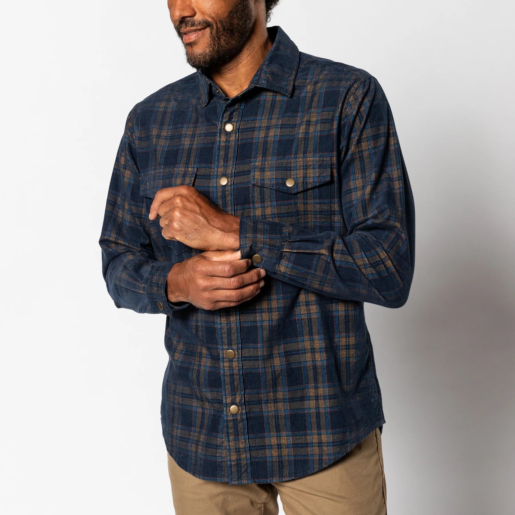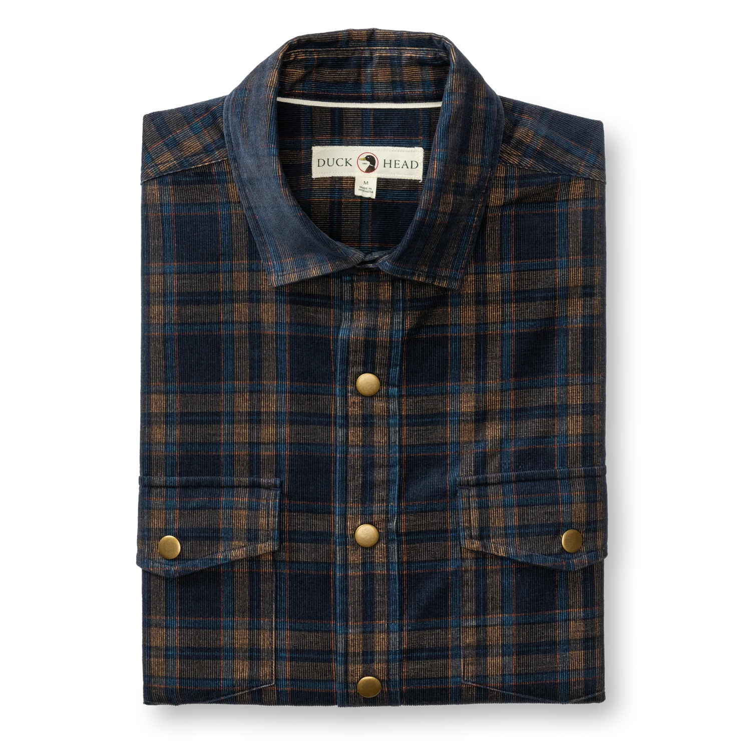 Duck Head Corduroy Plaid Snap Shirt: Cavern Plaid Maritime Blue